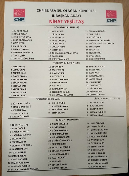 Cumhuriyet Halk Partisi 39. Olağan Bursa İl Kongresi demokrasi şöleni havasında gerçekleşti. Kongrede tek aday olan Nihat Yeşiltaş güven tazeleyerek yeniden İl Başkanı seçildi.
